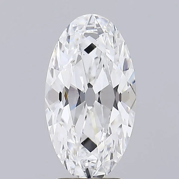 2.54 Close up of a sparkling oval cut diamond with multiple facets reflecting light against a grey background.